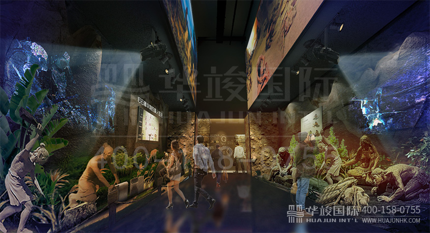 陶瓷文化的發(fā)展,追根究底就是人類文明發(fā)展的縮影,我們整個故事的開篇運(yùn)用造景的手法結(jié)合多媒體影響展示人類文明發(fā)展是怎么產(chǎn)生陶瓷的。
