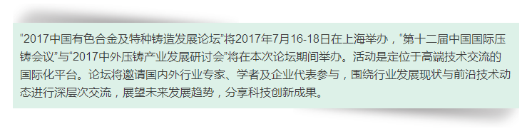 CHINA NONFERROUS 2018中國有色展將于2018年7月18-20日在上海新國際博覽中心舉辦。展會期間,主辦方將現場組織關于新能源汽車技術發展及趨勢的汽車技術日,主題活動分別是“汽車行業發展中的有色鑄造技術革命”、“汽車行業有色鑄件采購大會”和“前沿汽車有色鑄造工藝展示區”,敬請期待。