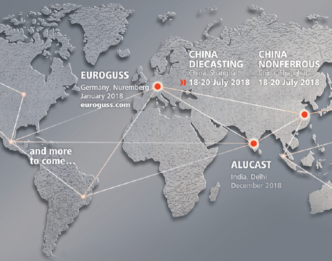 中國機械工程學會鑄造分會——紐倫堡會展的全球重要戰略合作伙伴之一,自2011年與紐倫堡博覽集團達成緊密的全球戰略合作以來,雙方致力于整合國內外壓鑄行業優質資源,與歐洲知名壓鑄展EUROGUSS,印度ALUCAST等全球展會聯動,將CHINA DIECATING 中國壓鑄會議暨展覽會聯手打造為全球極具影響力的品牌活動。隨著合作的深入及中國的市場需求,再度聯手于2015年推出中國有色合金及特種鑄造展覽會,在2017年也將推出主打黑色鑄造的中國鑄造展覽會。