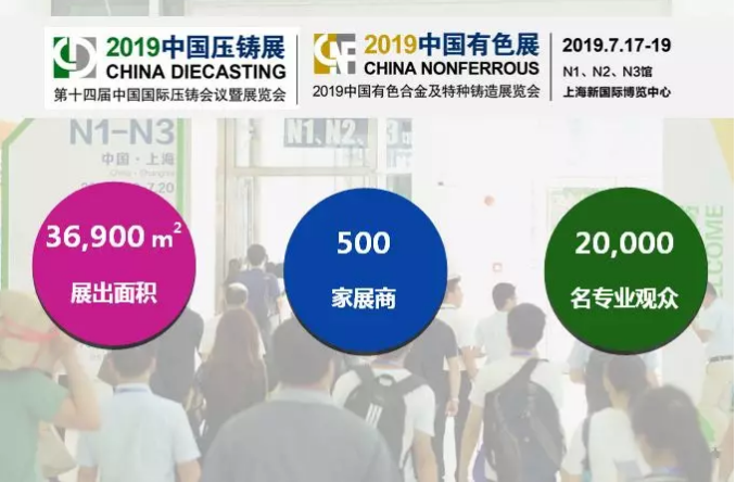CHINA DIECASTING 2019中國(guó)壓鑄展與CHINA NONFERROUS中國(guó)有色展將于2019年7月17-19日在上海新國(guó)際博覽中心N1-N3館再度舉辦,展會(huì)特設(shè)主題“高端壓鑄件制造技術(shù)的發(fā)展與多元化”,面積將達(dá)到36,900平方米,壓鑄有色全產(chǎn)業(yè)鏈近500家企業(yè)將爭(zhēng)先亮相,展出新產(chǎn)品、新技術(shù)、新工藝。