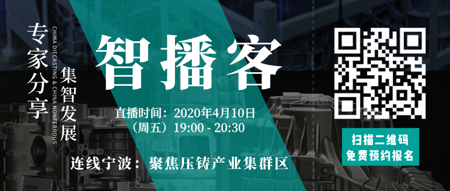 “智播客”第三期直播間我們有幸邀請到了三位寧波壓鑄企業權威專家張小巖先生、盛洪先生以及樂曉東先生,將4月10日(本周五)19:00–20:30相約智播客直播間,屆時《壓鑄周刊》主編曾偉立先生將擔任主持人,連線寧波,與專家們探討壓鑄產業集群區相關話題。